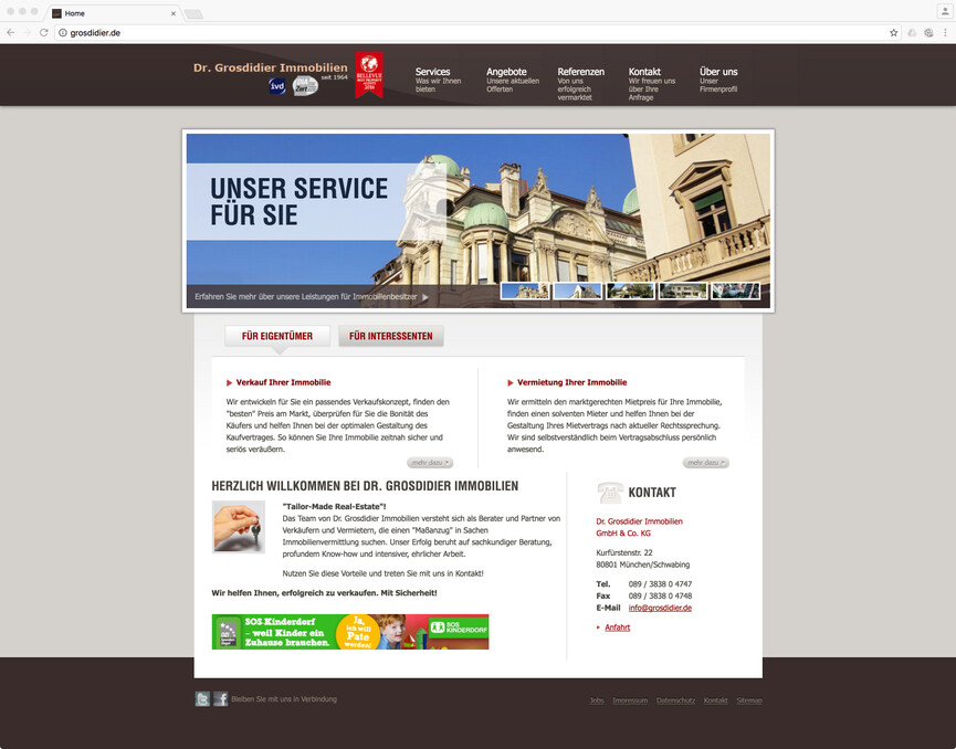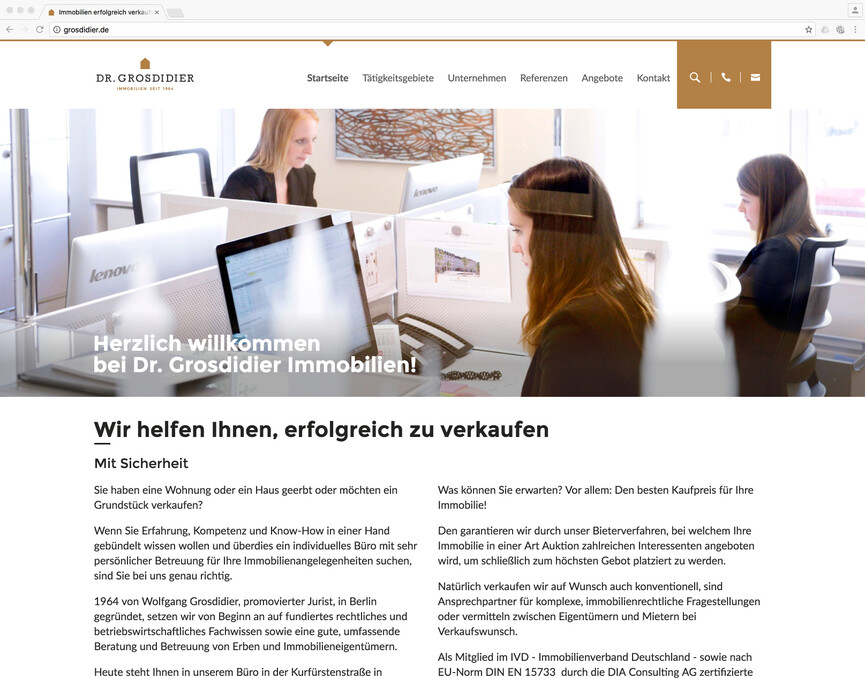 Dr. Grosdidier - Umfangreiches Rebranding für einen Immobilienmakler. Redesign von Logo, Geschäftsausstattung, Exposé, Verkaufsunterlagen, Webauftritt, Produktion Erklärfilm