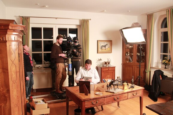 Mit einer Dolly (Schienensystem für die Kamera) wurden beeindruckende Kamerafahrten erstellt. Fährhofs Marketing-Leiter unterstützte als Handmodell die Filmcrew tatkräftig.