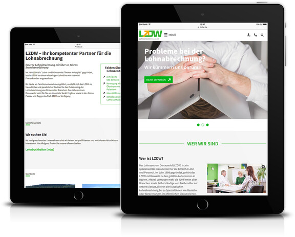 Für das Lohnzentrum Donauwald überarbeitete FIGGE+SCHUSTER das Unternehmens-Logo und konzipierte eine neue Geschäftsausstattung. Von den Ergebnissen mehr als überzeugt, erteilte das Unternehmen im zweiten Schritt den Auftrag für das Gestalten und Erstellen eines komplett neuen Online-Auftritts.