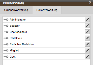 Durch unterschiedliche Personengruppen können Sie Zugriffe (z.B. Administrator, Redakteur) erstellen, die nur bestimmte Inhalte bearbeiten können.